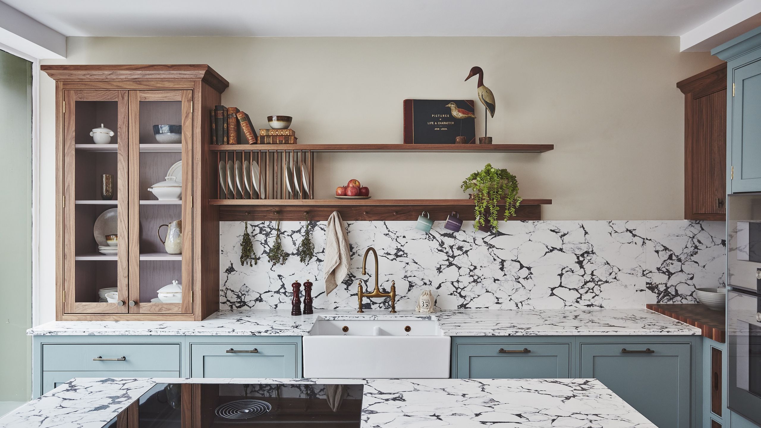If you’re going for a shelf directly above the sink like this one, positioning is key. “We typically install the rack at around 55cm [22 inches] above the sink. This makes it both practical for loading and unloading, and elegant in proportion to the wall space,” says Mark. Too high and you’ll be reaching, too low and the arrangement looks squat, and sink access may be compromised.